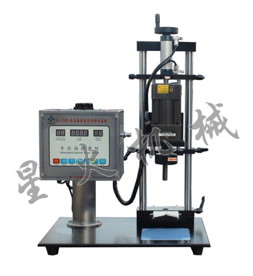 功能簡介:用于塑料、鐵質圓蓋,帶螺紋,能方便地用于擰緊或旋松各種瓶蓋。整機操作電、氣結合。電氣自動控制,穩(wěn)定好;設有旋蓋定位裝置,鎖蓋標準,操作方便;鎖蓋范圍寬,其可調的離合器可有效地避免瓶蓋的損壞,并減少內塞的磨損。一旦瓶蓋旋緊,卡頭即自動停止旋轉,表明您可進行下一個瓶蓋的操作。并且時間間隔可自行調制,每分鐘可達30瓶。如您同時選購支架,便可將旋蓋機輕便、整潔地旋起。該系列機器能有效地減少勞動強度,保證旋蓋質量。