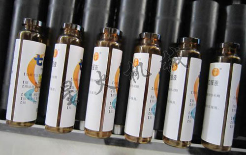 人工將瓶子置于料斗內(nèi),開啟按鈕,理瓶機(jī)自動(dòng)理瓶,主機(jī)啟動(dòng),瓶子到轉(zhuǎn)盤后,轉(zhuǎn)盤再將瓶子帶到灌裝工位,采用圓盤定位灌裝,灌裝完成后瓶子自動(dòng)被帶到加蓋、旋蓋工位,自動(dòng)加蓋,旋蓋,旋蓋完成后自動(dòng)出瓶。